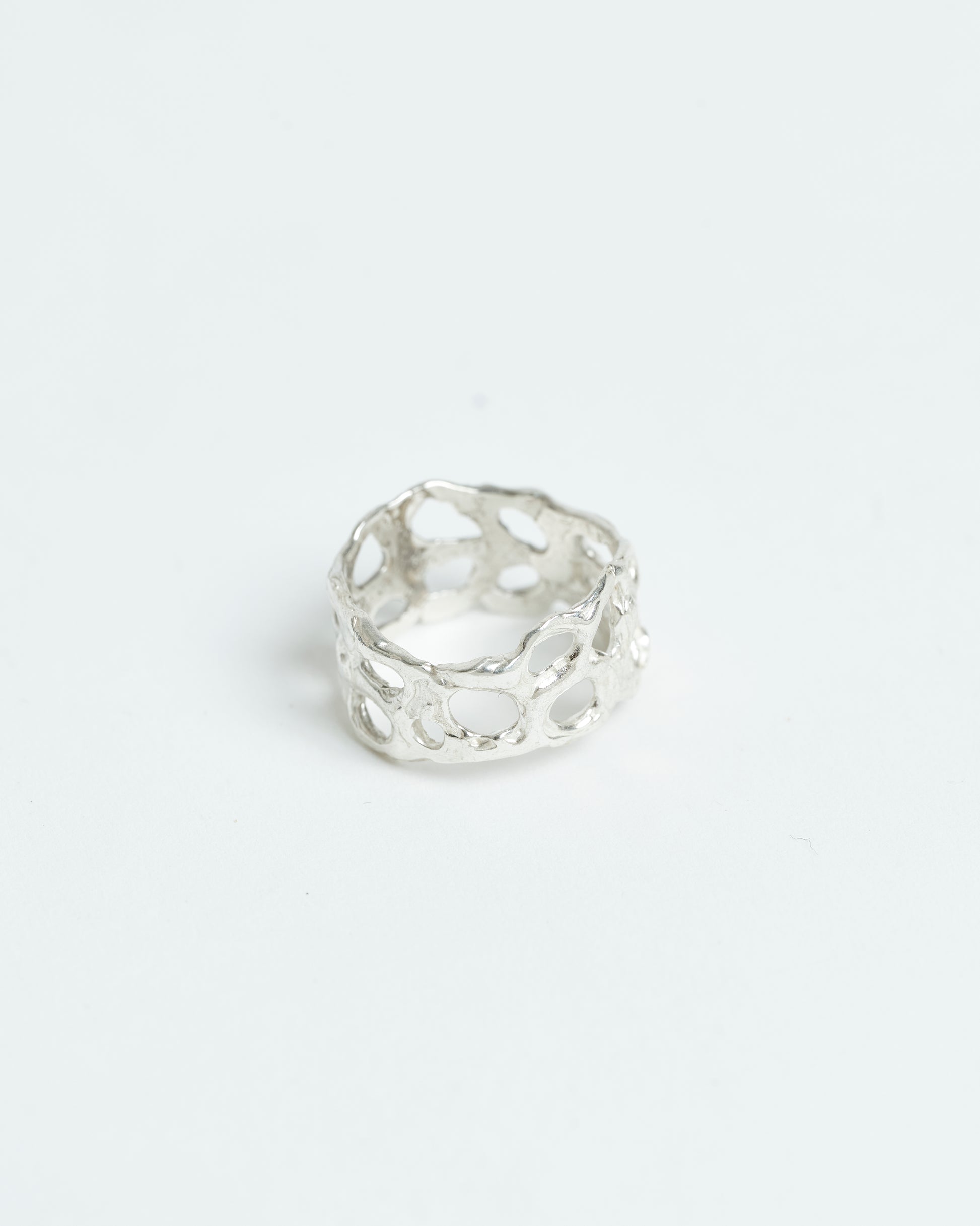 Anillo inspirado en las formas orgánicas de los corales marinos, evocando la belleza natural del océano. Cada detalle fue cuidadosamente modelado a mano en cera, dando forma a un diseño único que luego fue fundido en metal mediante técnicas artesanales. El resultado es una joya con textura y movimiento, que captura la esencia del mar y la transforma en una pieza elegante y atemporal.